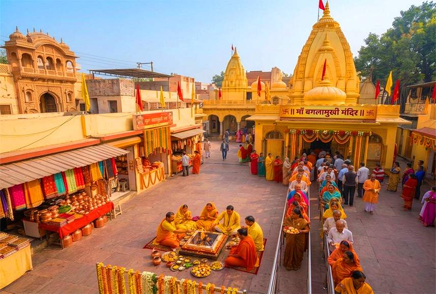 “विद्वान पंडितों द्वारा विधि-विधान और वैदिक मंत्रों के साथ माँ बगलामुखी की पूजा और अनुष्ठान संपन्न किया जाता है।”